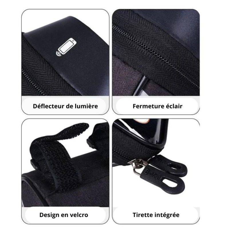 Avec notre support Bliking, votre téléphone est à l'abri de l'eau et de la poussière grâce à sa conception étanche et résistante. Profitez pleinement de votre aventure à vélo par tous les temps sans craindre pour votre précieux appareil. Et ce n'est pas tout ! Grace à la fenêtre tactile transparente, vous pourrez utiliser votre téléphone sans le sortir de votre support. Répondez facilement à un appel ou consultez votre GPS en un clin d'œil, en gardant les mains sur le guidon et les yeux sur la route.