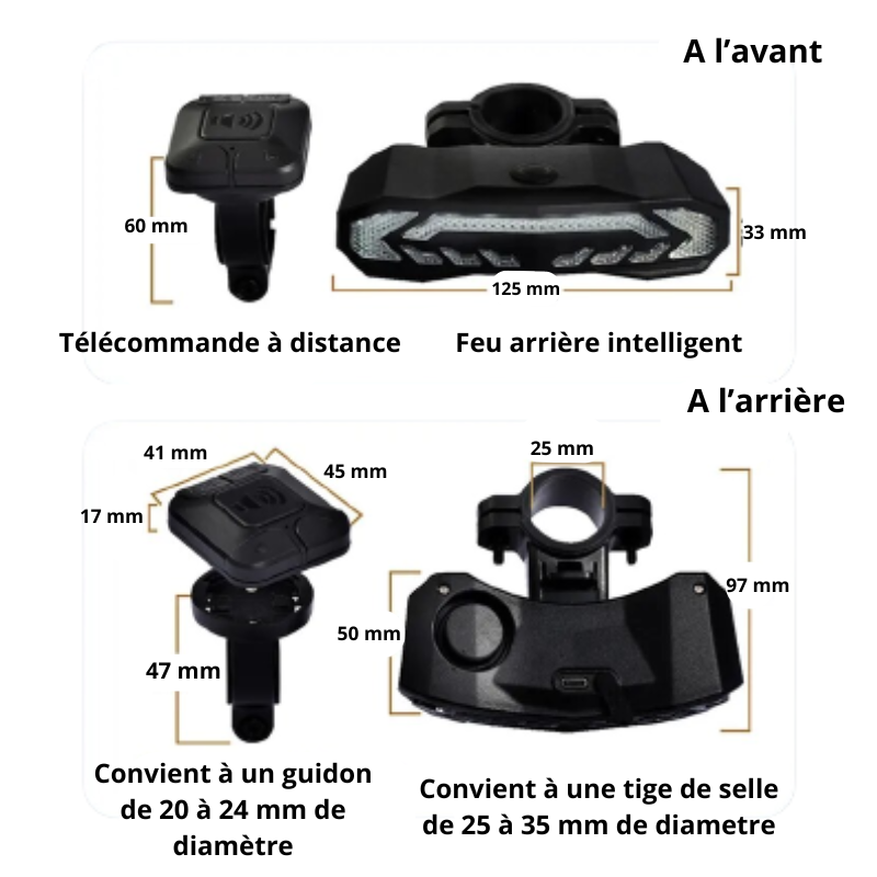 L'alarme du Clignotant Bliking a une portée effective de 110 décibels.